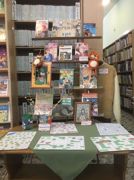 В отделе обслуживания и информации центральной библиотеки им. А. С. Пушкина в рамках клуба «Сударыня» прошел вечер идей «Досуг для ума и рук». Заседание клуба проходило в форме досугового часа, где каждый из членов клуба смог рассказать о своем увлечении. Так, Бирковская С. А. в свободное время увлекается изготовлением украшений из атласа, Лыщенко А. М. вышивает гладью картины, Копылова Н. Н. изготавливает из природного материала сувениры, Семашко В. А. вяжет крючком мягкие игрушки. Ведущая клуба также продемонстрировала свое увлечение: вязаные спицами вещи. На мероприятии была организована выставка творческих идей с одноименным названием.